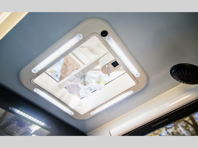 - Bathroom 12V roof hatch with fan and LED lighting (select models)