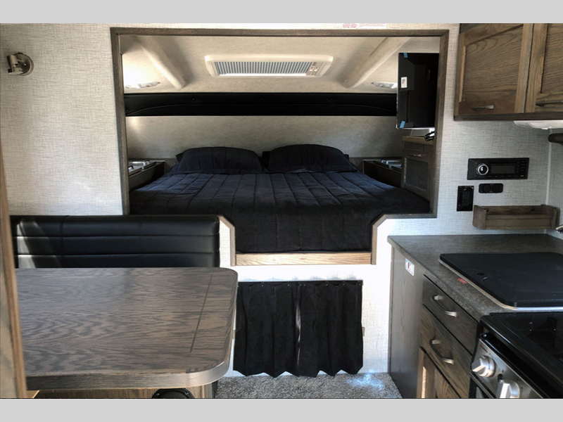 Sleeps 3 Length 18 ft 2 in Ext Width 8 ft 2 in Ext Height 8 ft 10 in Int Height 6 ft 8 in Interior Color Black, Black with Light Grey, Chocolate Sandstone, Black with Steel Grey, Brown and Light Grey, Slate Grey, Arctic Blue, Arctic Blue Steel Grey Exterior Color White Dry Weight 3510 lbs Fresh Water Capacity 36 gals Grey Water Capacity 40 gals Black Water Capacity 18 gals Furnace BTU 20000 btu Available Beds Queen Refrigerator Type Two Way Refrigerator Size 6.3 cu ft Cooktop Burners 3 Number of Awnings 2 Floor Length 10 ft 11 in Center of Gravity Front 48 in LP Tank Capacity 20 lbs Water Heater Capacity 6 gal Water Heater Type Gas/Electric AC BTU 11000 btu Truck Bed Size Long TV Info LCD TV Awning Info 7' Power Rear & 10' 5" Power Side Number of LP Tanks 2 Body Style Hard-Side Shower Type Wet/Bath Shower -
