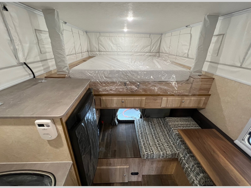 Sleeps 3 Length 12 ft 2 in Ext Width 6 ft 5 in Int Height 6 ft 11 in Dry Weight 1258 lbs Fresh Water Capacity 17 gals Refrigerator Type 12V Compressor Refrigerator Size 3.5 cu ft Cooktop Burners 2 Floor Length 6 ft 3 in Center of Gravity Front 22 in Truck Bed Size Short/Long Body Style Pop-Up Electrical Service 30 amp Solar Wattage 200 watts Similar Floorplans